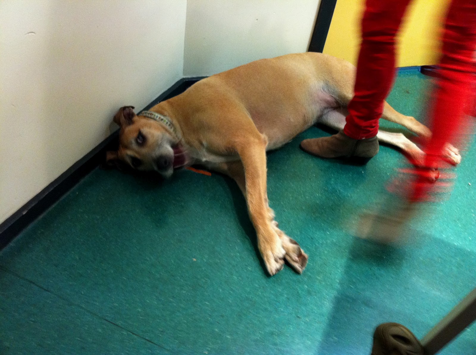 Here's a picture of me on my 3rd visit to Dr Dog. Don't worry. It's G-rated even though Dr Dog is feeling me up.